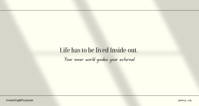 Living ‘inside-out’ means starting from inner truth, not external pressures. It flips the script: instead of moulding to the world’s expectations, you build outward from self-awareness, authenticity, and aligned action. Outer success flows naturally when your path honours your core wiring – values, strengths, rhythms – rather than chasing borrowed scripts.